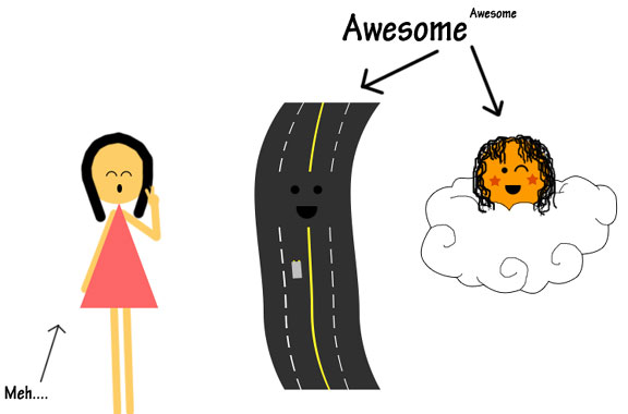 Yes, the road with one lone car is supposed to be Roadlesstaken. And yes, I drew Nimbusthedragon as a smiling Dragon Ball riding a nimbus cloud (because I can’t draw dragons for sh*t).